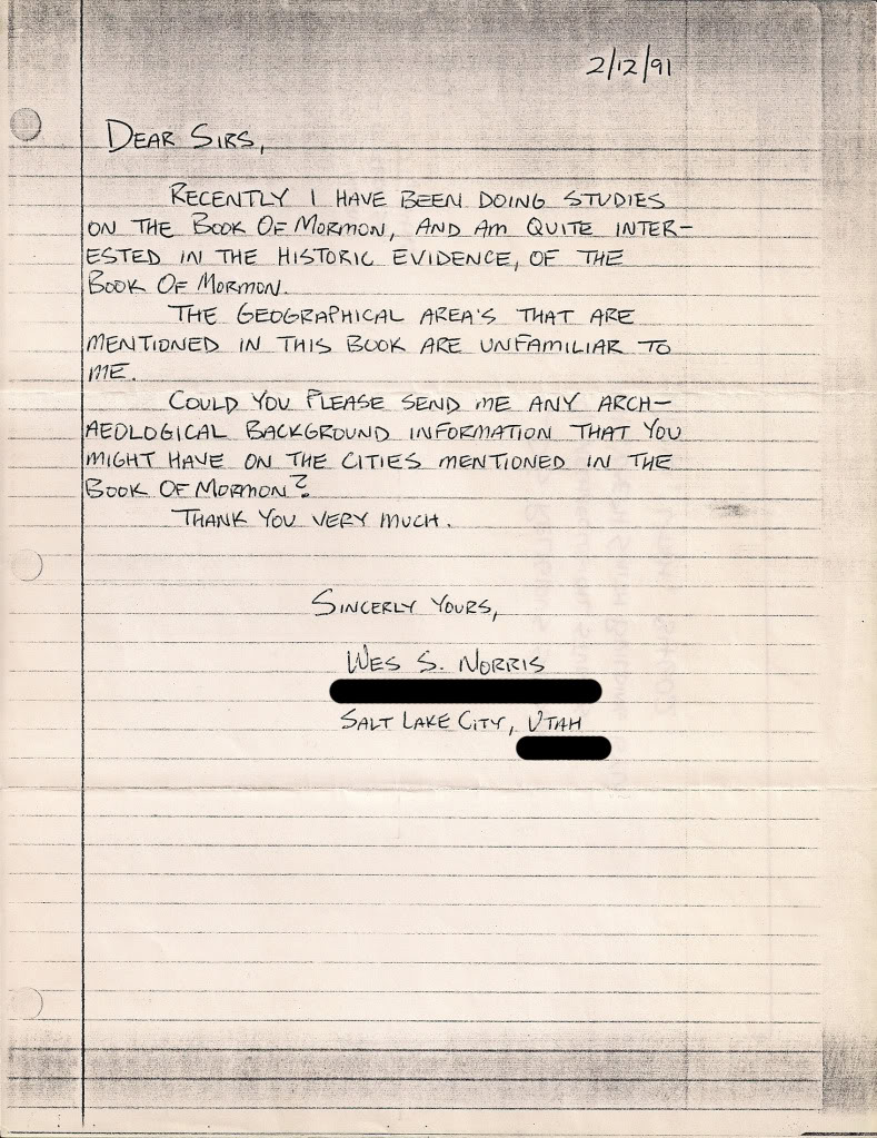 This letter confirmed the rumors I had heard: There are no archaeological or geographical facts known about any of the cities mentioned in the Book of Mormon. This was definitely the beginning of answers from the academic level of the Mormon Church that I had hoped for.