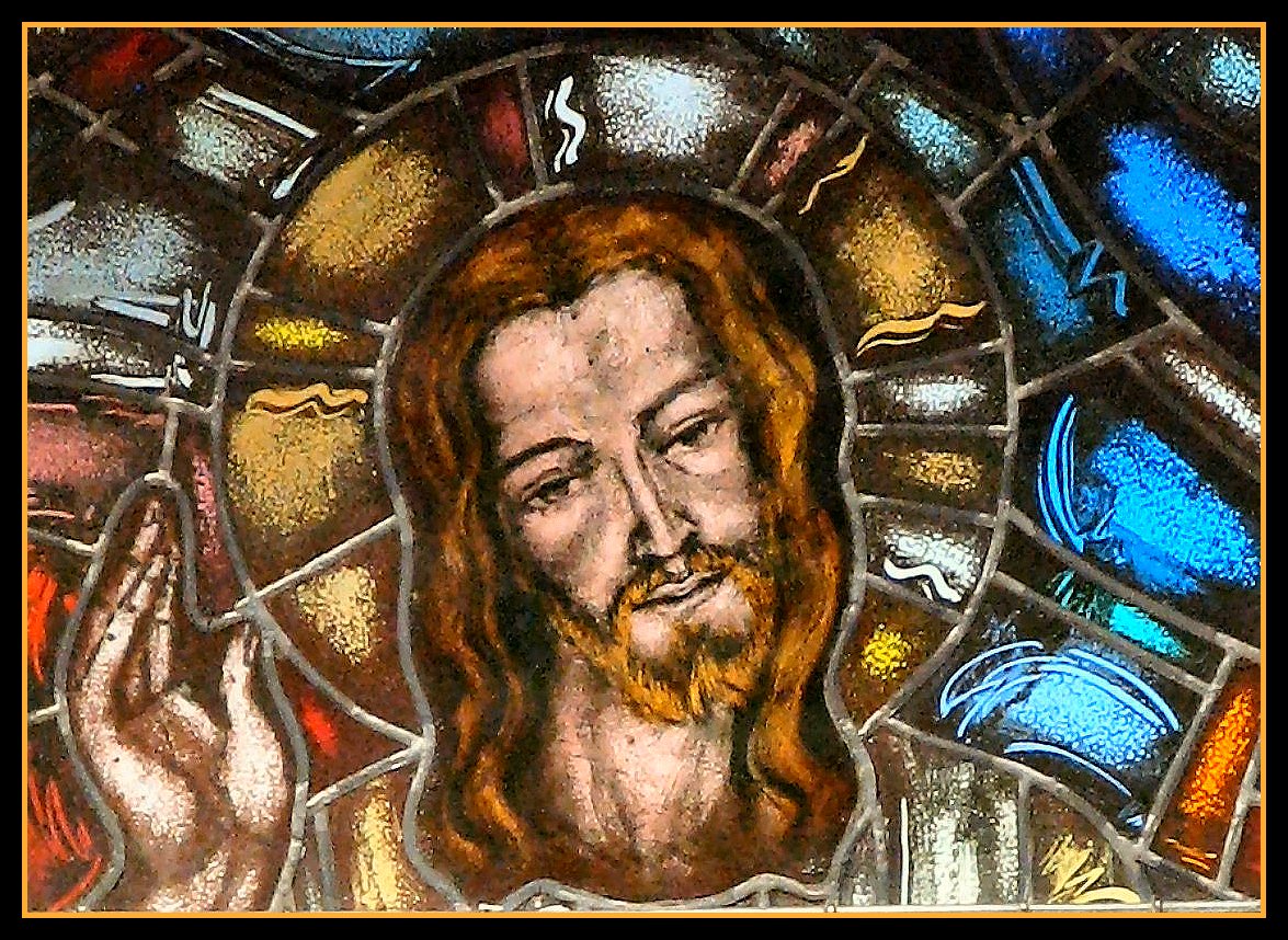 The Trinity Triangle: “We believe in the Triune God-Father, Son, and Holy Spirit. This window uses the Latin Pater, Filius, and Spiritus Sanctus to name the persons in the Trinity. One God and Three Persons is a great mystery of the Church. The window explains that the Persons are not each other, but each is God (Deus).”