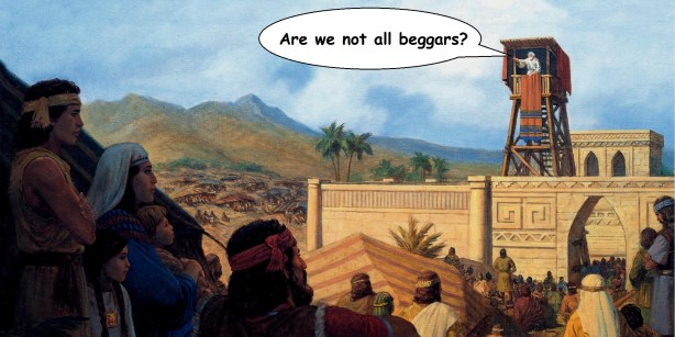 King Benjamin in The Book of Mormon vehemently opposes the gospel taught by Elder Holland. “Are we not all beggars?” he first asks and then expounds on in Mosiah 4:19-20,