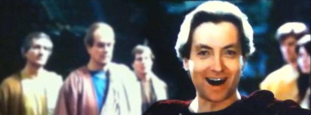 (Lucifer breaking the fourth wall in a scene from the 1991 Temple Endowment film)