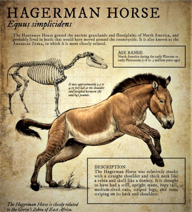 (Banner art: Infographic for the “Hagerman Horse” which was the last of the Pre-Columbian American horses and the animal whose skeleton you will see the author’s photograph of in the footer art of this article)