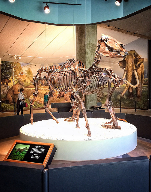 A photo of one of the La Brea Tar Pit Museum horse skeletons taken by the author in 2016.