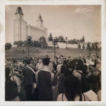 “Evangelicals … are blunt. When we see something we perceive as false, we confront it head-on. We value accuracy more than someone’s comfort.” An Evangelical Street Preacher preaching in front of the Manti, Utah Temple (photo credit: Mark Shreve)