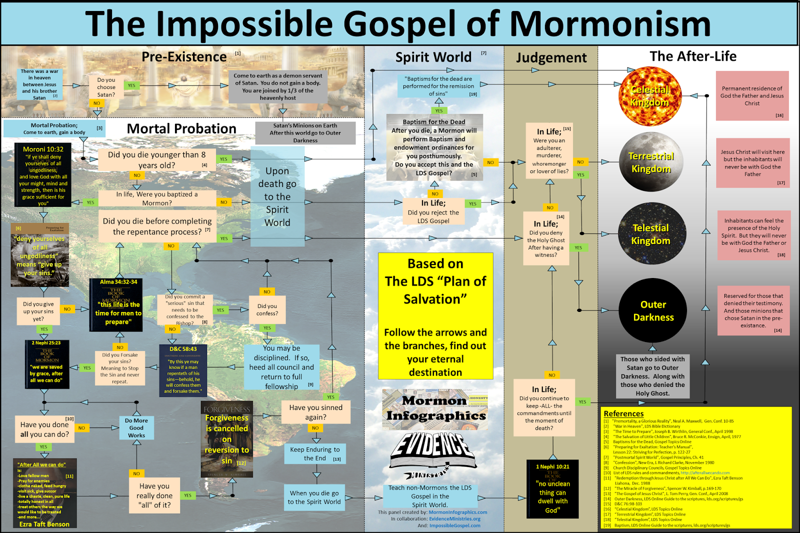 Few topics ignite people’s imagination, fear, or indignation as the historic Christian understanding of hell. It has been understood as a place of torment for sinners without mercy or reprieve which endures for all time and eternity. The view of hell from the perspective of the teachings of “The Church of Jesus Christ of Latter-day Saints” (hereafter LDS) differs significantly from that of the historic Christian understanding of hell; they have a temporary hell which is called “Spirit Prison” for those who died over the age of accountability (8 years old) and had not yet accepted the LDS “restored gospel.” and a permanent hell for those who rejected the Plan of Salvation in the pre-mortal council in heaven or for those who commit the unpardonable sin of denying the Holy Ghost.1