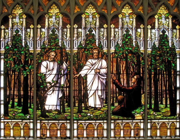 A stained glass window in the Salt Lake 2nd Ward depicting the First Vision. The First Vision is where God, according to Joseph Smith, said that all if the existing Christian Creeds, were an abomination in his sight (see Joseph History 1:19). This would have included the Apostle’s Creed which is discussed in the following article.