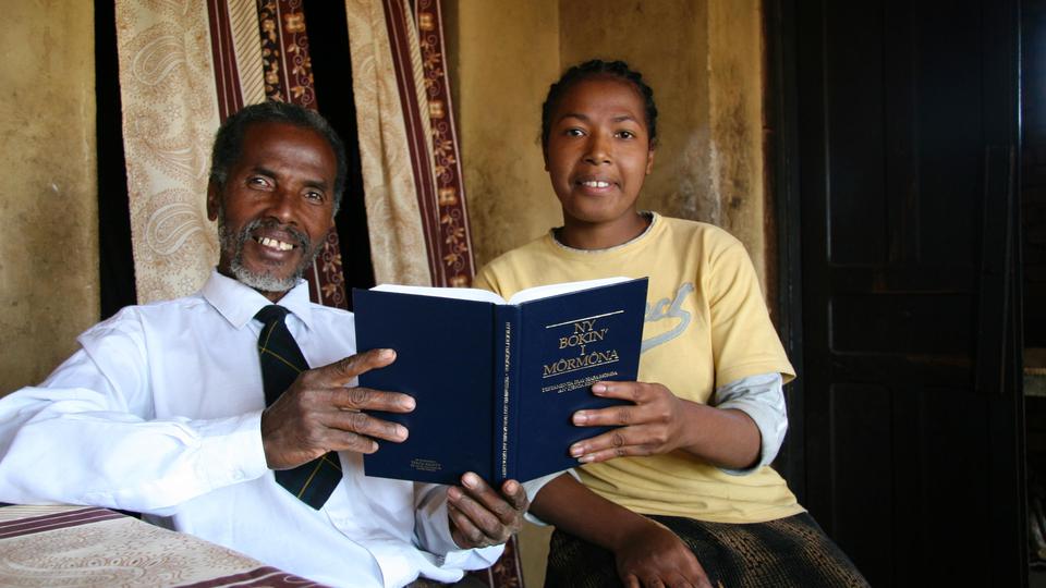 An African Mormon and his daughter holding the Book of Mormon. (credit: LdS Church Newsroom)