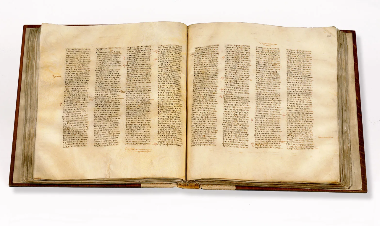 The Codex Sinaiticus or “Sinai Bible”, is one of the four great uncial codices, ancient, handwritten copies of a Christian Bible in Greek. It is the oldest complete copy of the New Testament dating to the 4th Century AD.