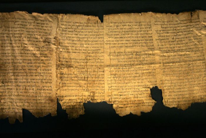 A portion of the Great Isaiah Scroll from the Dead Sea Scrolls. It is the oldest complete copy of the Book of Isaiah. It is also notable in being the only scroll from the Qumran Caves to be preserved almost in its entirety. The variants between this scroll and the Masoretic text that followed about a millennia later were minor with most due to scribal error.